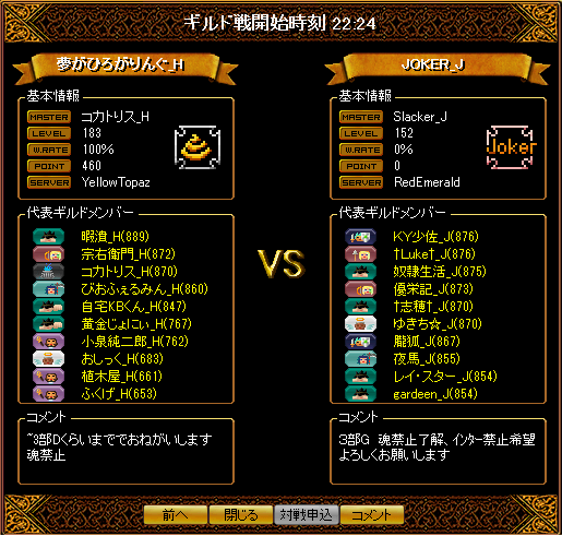 22:41:44 [先]暇潰_H →[後]夜魅_J (Lv759)