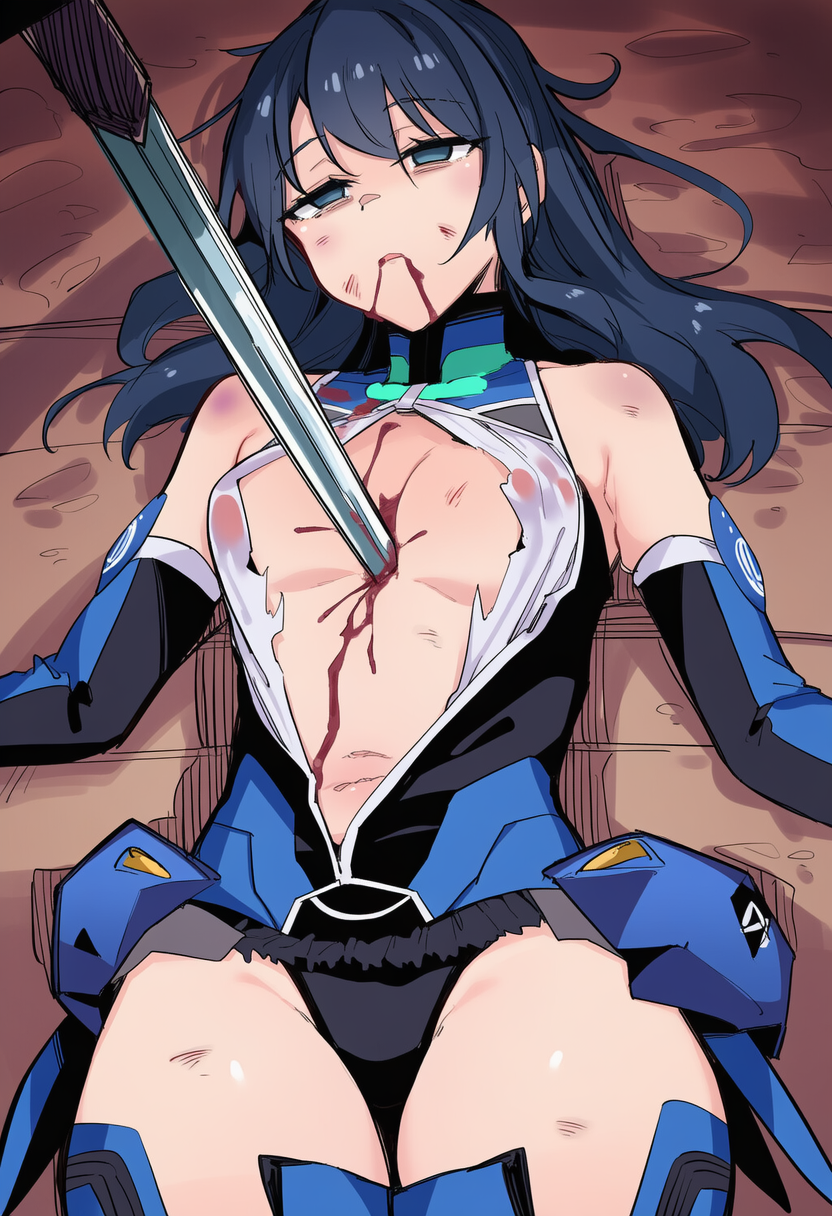 Excessive scattering in all directions.,excessive splatter blood spurting, pastel colors,(blood pool),Excessive splatter blood splattered all over one's body,excessive blood on sword