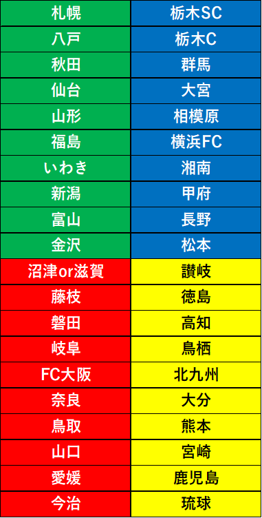 J2J3の東西南北は「北が開幕できなくなる(最低5か所非降雪地が必要)」という事情で、地理的要素だけとはしないことが公表されてます