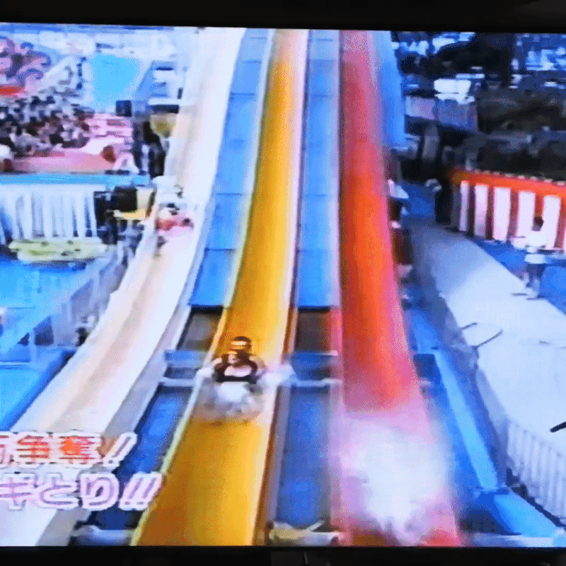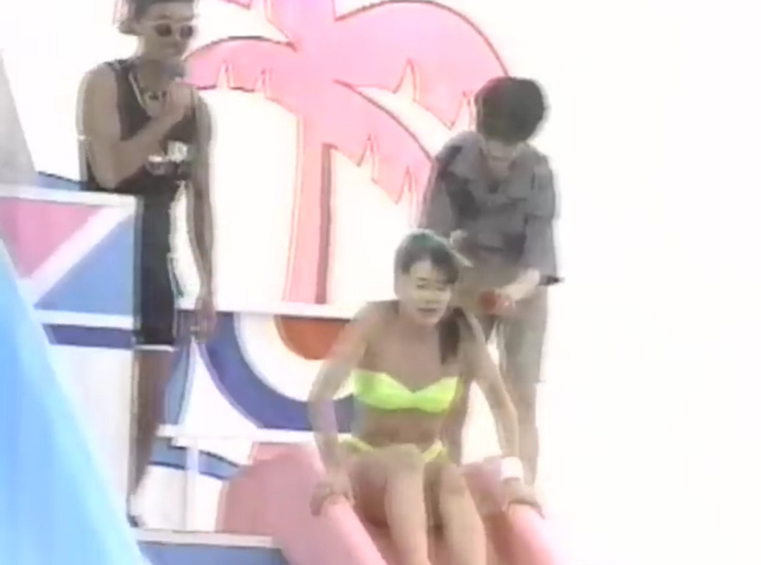男性ゲストは確かたけし軍団の誰かで、番組の途中、西田ももこ嬢が水着カップルの素人として登場。たけし軍団のゲストと水着のままジェットコースターに乗せられ、最後はウォータースライダーで滑り降りるとビキニが外れてる(滑り出す段階でビキニが外れている)という、演出丸出しの内容でした。