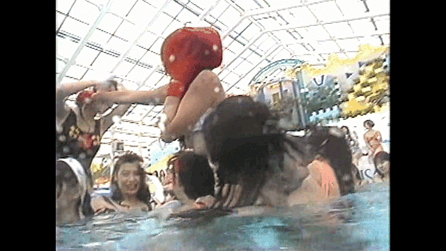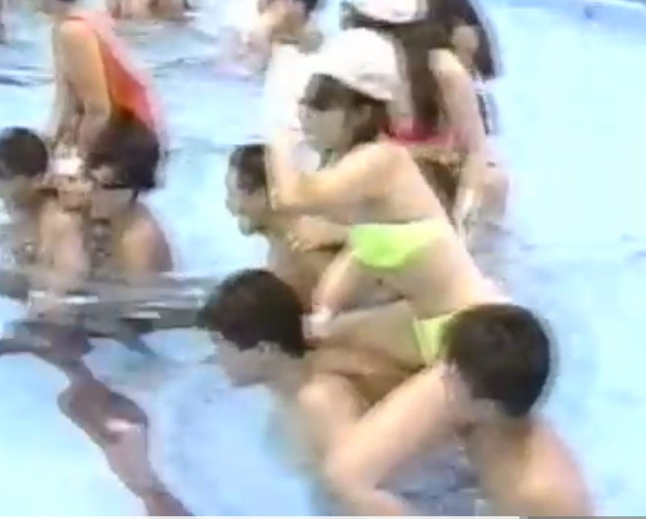 厳密には水泳大会ではないのですが、1998年ごろにテレビ東京の深夜に放送されていた、シェイプUPガールズ出演の「もっと遊びたい」あるいは「爆裂遊戯団」という番組で、プールのあるレジャー施設のロケがありました。
