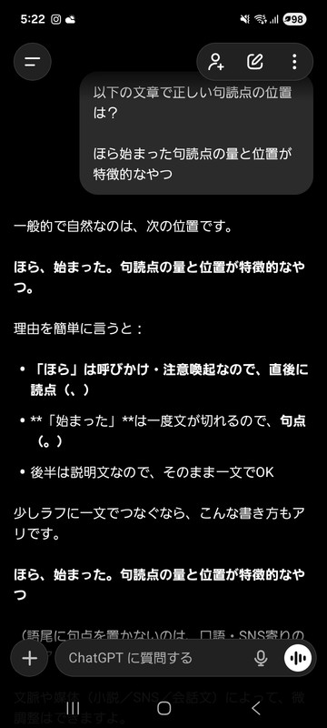 ほら始まった句読点の量と位置が特徴的なやつ