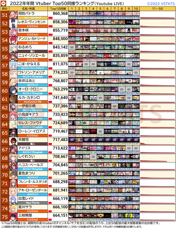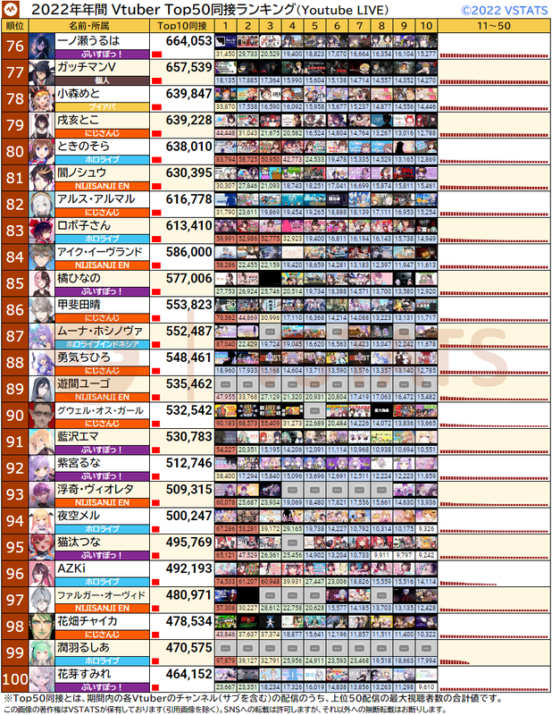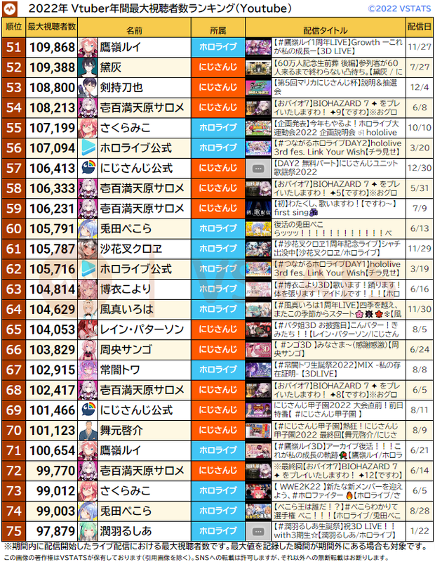 2022年年間 Top50同接ランキング(51〜100位)
