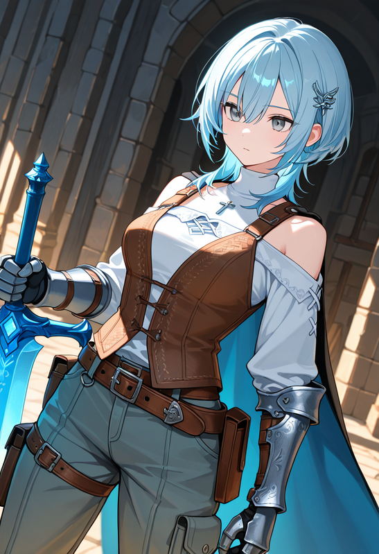 蒼色の眼と肩口までの蒼髪が特徴的