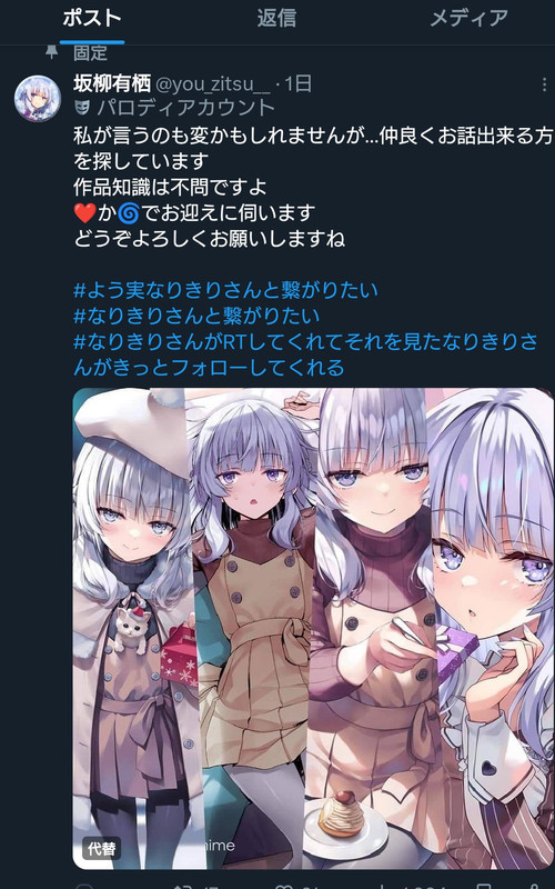 いったい誰のどの発言に対してレスしてるのかよくわからんがRTじゃ駄目なのか? RTすると時線が流れる?そんなの誰彼構わず札募集繰り返してるからだろ まともな人は一日にそんなに何度も札募集に反応してないよ、行為目当ての害悪とか数集めの崩壊勢じゃあるまいし 「良いね見れないからリプしてください」って本人が言ってる札にならそれでいいじゃん。相手が見えてない人だったらそう言うだろ?RTしてくださいとかリプしてくださいとか指定されてたらそれに従えばいいじゃん?自分で勝手に決めるな