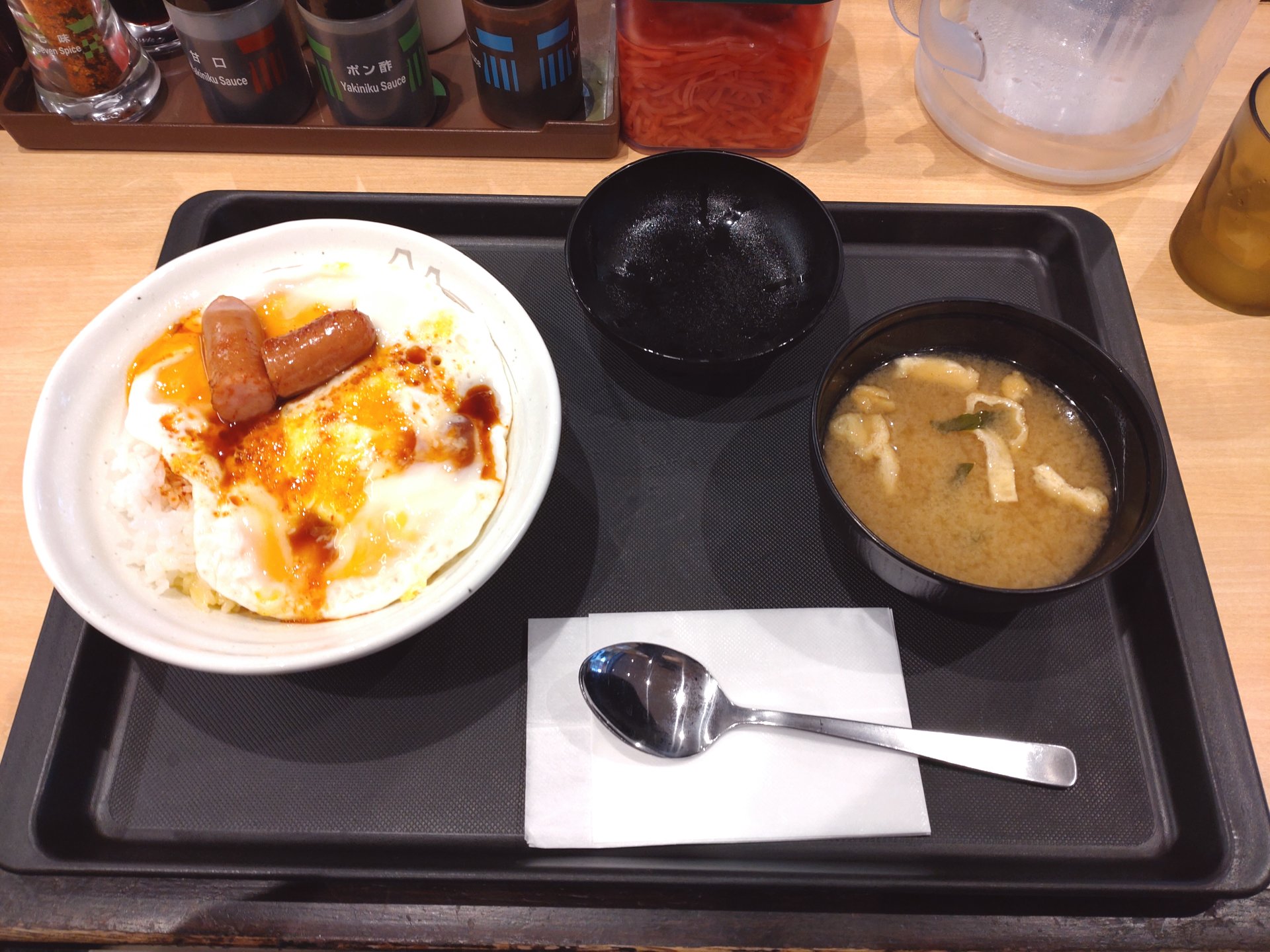 ( つ旦~_。_-、 旨辛玉子ソーセージ丼 \430